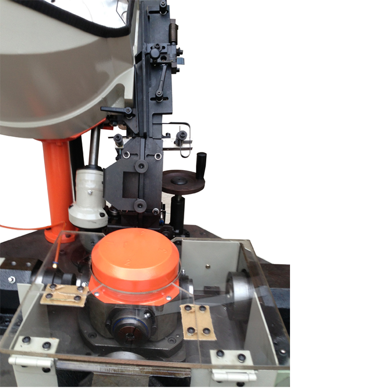 本機可加工一般型鈕扣,最高速度可達210粒/分;適合鈕胚的單面加工??筛鼡Q不同類型的工位,完成不同鈕扣花樣的加工,簡單迅速;同時也可配置電眼辨色裝置與激光鐳色裝備,在鈕胚表面進行復雜圖案的加工。