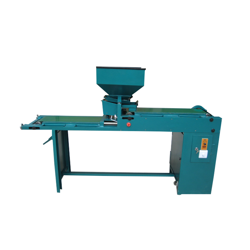 本機(jī)是一款簡(jiǎn)單易操作的帶振動(dòng)的檢鈕機(jī),通過漏斗下面的振動(dòng)裝置,調(diào)好振動(dòng)頻率,使鈕扣順利的落在上層輸送帶上,左右各坐一人,排選一面。而后通過中間翻板落在下層輸送帶上,左右各一人挑選另一面。